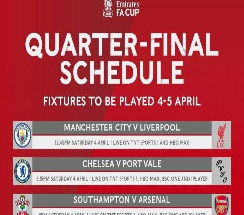 足总杯八强抽签揭晓:曼城死磕利物浦,阿森纳战南安普顿