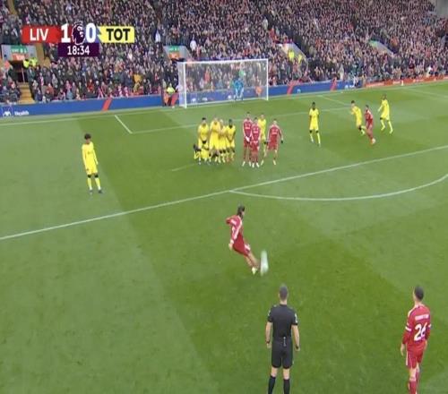 剑南春利物浦11热刺,索博斯洛伊任意球破门,里沙利松绝平