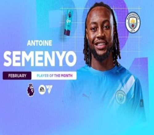 5场比赛3球1助,曼城冬窗新援塞门约当选英超2月最佳球员