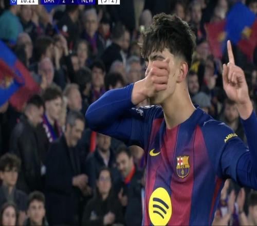 18岁296天,贝尔纳尔是欧冠淘汰赛进球第三年轻的巴萨球员
