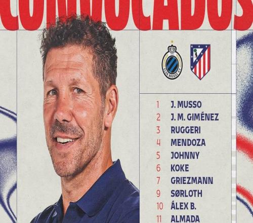 马竞附加赛大名单:阿尔瓦雷斯、格列兹曼在列,冈萨雷斯伤缺
