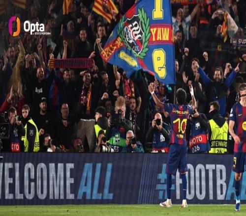 欧冠单轮淘汰赛进2粒点球,亚马尔成为继梅西之后巴萨第二人