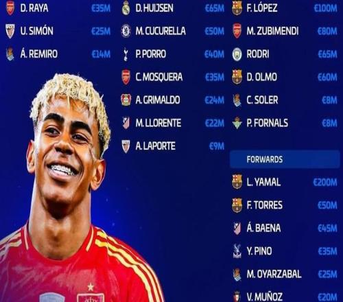 西班牙新一期大名单身价榜:亚马尔2亿欧第1,巴萨占据前4位