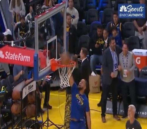 能打几分库里赛前热身时大秀空接暴扣