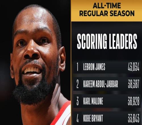 杜兰特37岁了,他还能超科比33643的得分纪录吗答案不难猜