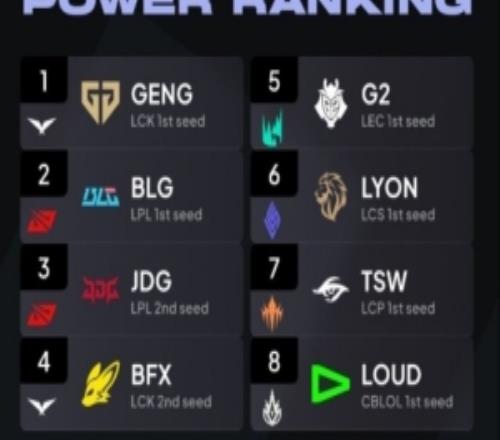 外网排先锋赛战队实力榜:GEN排名榜首BLG与JDG分列二、三G2第五