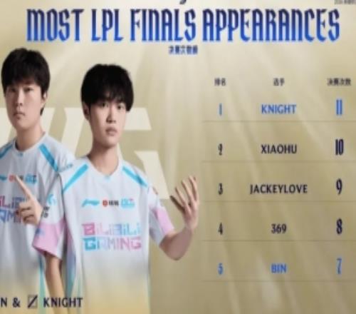 Knight出道至今已经十一次打入决赛,超过xiaohu的十次