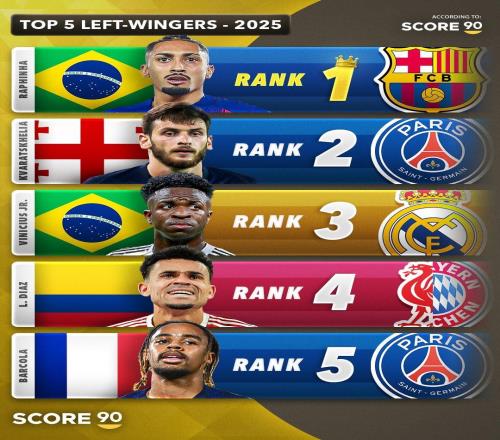 Score90评2025年五大前锋:拉菲尼亚、亚马尔、姆巴佩各位置居首