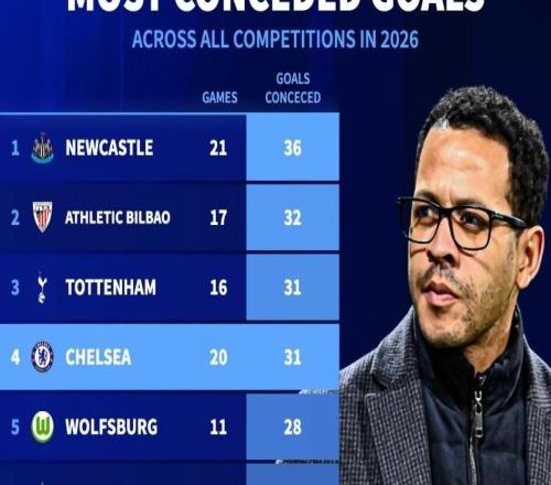 切尔西2026年20场丢31球,同期五大联赛球队与热刺并列第三多