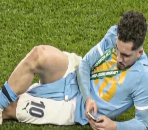 松弛,英联杯颁奖典礼结束后谢尔基在场内躺着玩手机