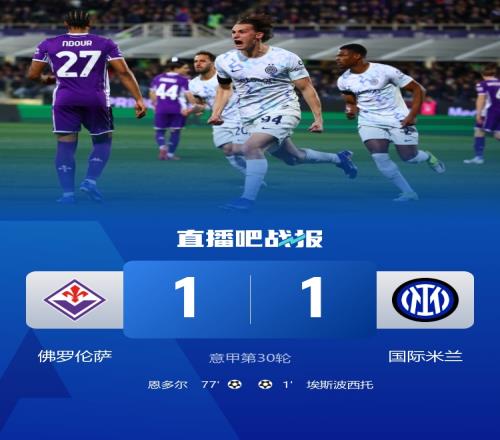 国米领先了大半场被扳平!恩多尔门前补射破门,佛罗伦萨扳平比分