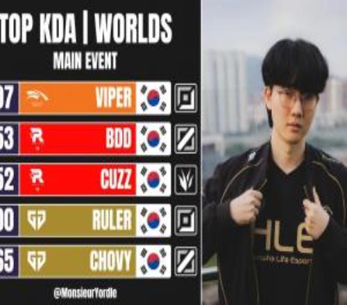 老公尽力了媒统计S15KDA排行榜:Viper第一,KT、GEN各两人上榜