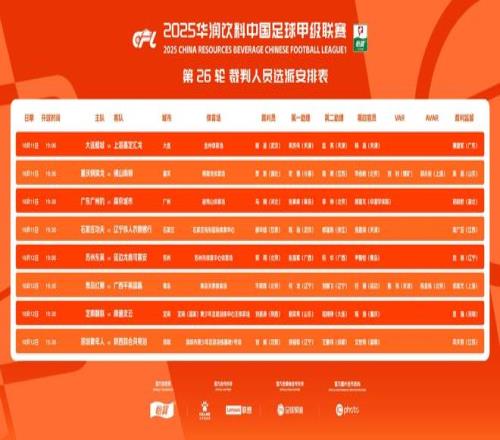 其中,冲超热门重庆铜梁龙主场与保级球队佛山南狮的较量,主裁判是来自湖北的中超序列裁判员贺凯;第一助理是来自长春的史强,第二助理是来自江苏的陆爽;第四官员是来自北京的李会刚;视频助理裁判是来自煤矿的刘钊,助理视频助理裁判是来自上海的邱兆俊;裁判监督是来自山东的吴磊。