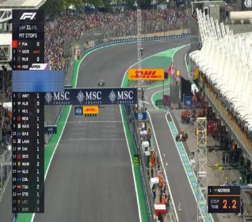 第五十一圈:诺里斯二停,维修区起步的维斯塔潘暂时领跑
