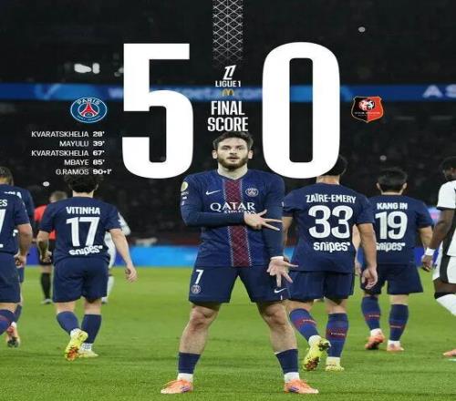 法甲 巴黎圣日耳曼 5-0 雷恩