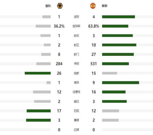 第62分钟曼联终结胜负悬念,B费大禁区前沿挑传,突然前插的芒特获得了无人盯防起脚的机会,后者轻松推射破门,将领先的优势扩大到了3-1,第81分钟狼队禁区内手球,送给了曼联一粒点球,B费稳稳主罚命中,将比分定格为了4-1。