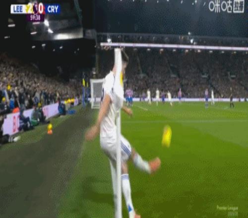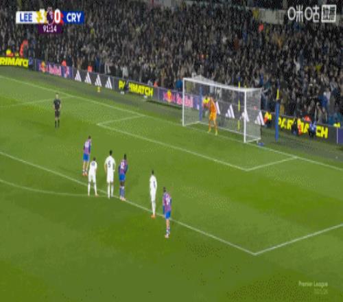 第45+4分钟,比约尔助攻,勒温头球破门完成双响,利兹联2-0水晶宫