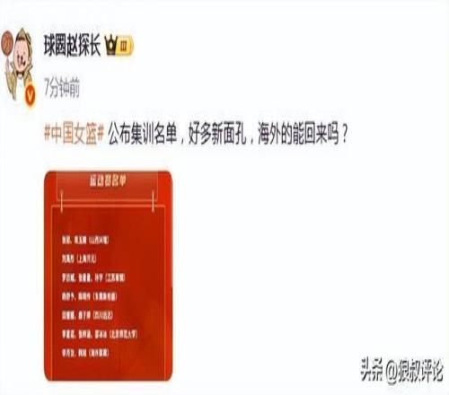 媒体人“赵探长”发文点评:中国女篮集训名单,好多新面孔,海外的能回来吗?