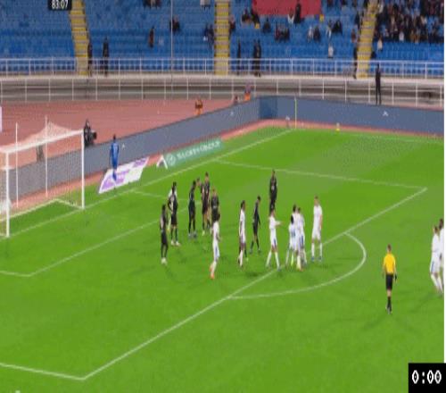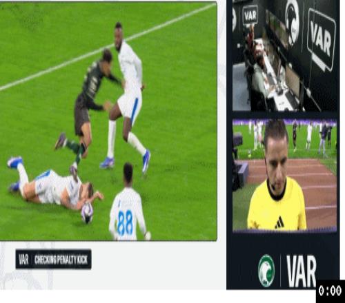 人数占优的利雅得新月直到上半时最后1分钟才抓住机会,利雅得新月左路压上,利物浦旧将努涅斯禁区角上拿球强行突破2人包夹杀入禁区倒三角回传,米林科维奇禁区弧顶处接球往前调整一步右脚大力兜射,皮球直入球门左下死角,利雅得新月1:0打破僵局。仅仅2分钟后,上半时补时阶段,拉斯永恒左路快速反击,谢赫里突入禁区晃开防守被回防的米林科维奇铲倒,主裁在VAR确认后,认定米兰科维奇铲球时手碰到了球,吹罚了点球。恩里克操刀主罚一蹴而就,拉斯永恒半场压哨破门1:1快速扳平比分。