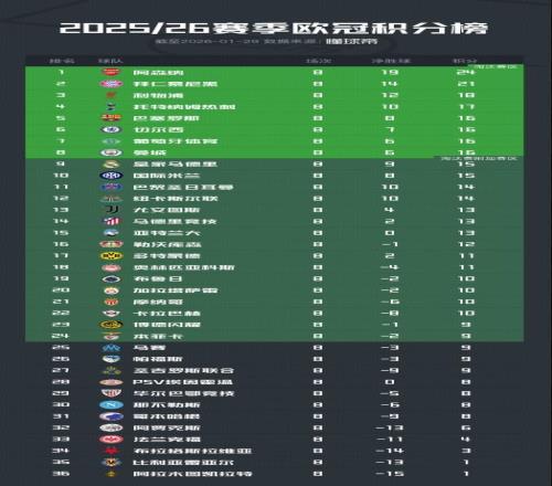 本赛季欧冠的联赛阶段结束,直接晋级16强的五大联赛球队里有5支英超球队、1支西甲球队、1支德甲球队和1支法甲球队。需要参加淘汰赛附加赛的球队中,有1支英超球队、2支西甲球队、2支德甲球队、3支意甲球队和2支法甲球队。