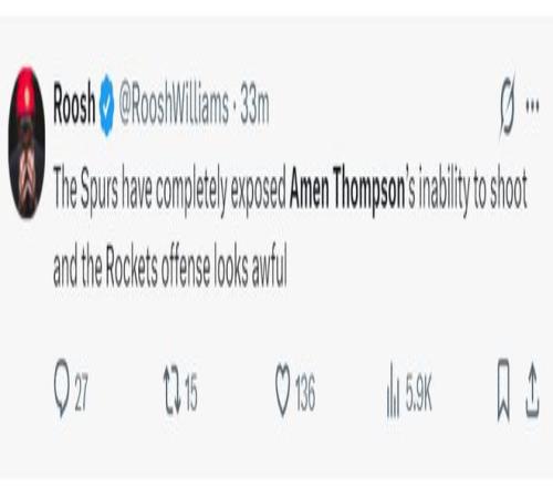 赛后休媒纷纷炮轰阿门:马刺队彻底暴露了阿门的投篮能力不足的问题,当然火箭队的进攻表现也相当糟糕。