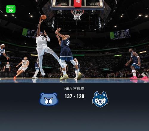 第四节灰熊凯姆-斯宾塞拿下9分,森林狼迪文琴佐拿下13分,最终灰熊137-128战胜森林狼