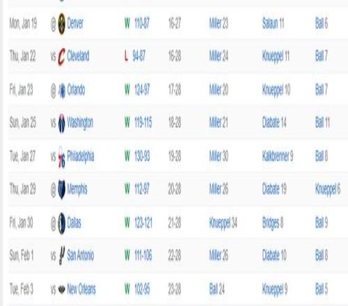 这一波七连胜中黄蜂全队有6人场均得分都上双:米勒23.1分、鲍尔17.9分,克努佩尔16.4分、布里奇斯14.3分、塞克斯顿11.1分、迪亚巴特10.7分。