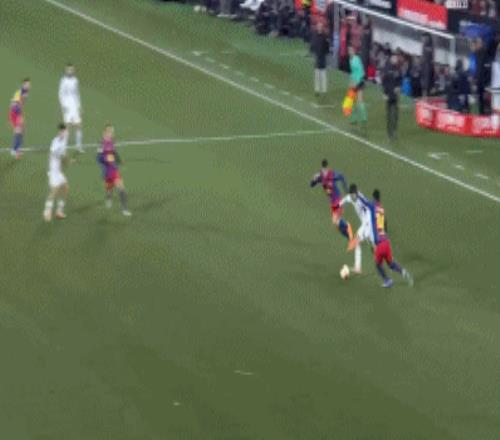 第39分钟,德容前场断球后助攻亚马尔兜射破门,巴萨1-0!