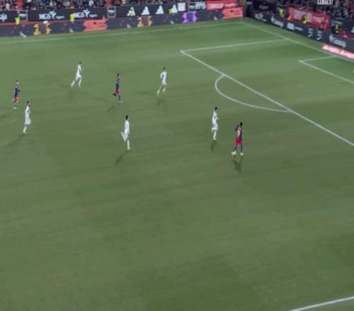 第67分钟,费尔明妙传,奥尔莫插上打门被没收