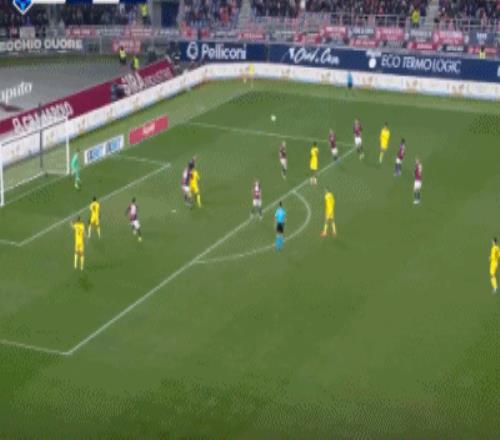 第48分钟,博洛尼亚边线球失误,拉比奥断球破门,米兰3-0博洛尼亚