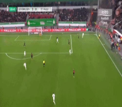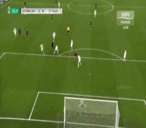 第31分钟,泰里耶凌空抽射,皮球直挂死角,勒沃库森1-0圣保利