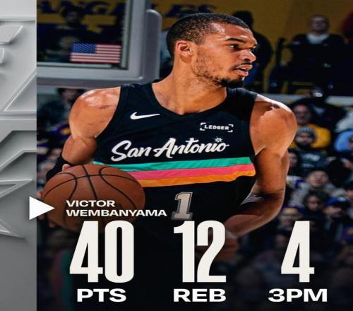 略有可惜的是,第三节文班亚马进攻欲望下滑,单节只出手3次,命中1记三分,且因为分差实在太大(马刺最多领先41分),所以文班亚马的最终得分停在了40分——