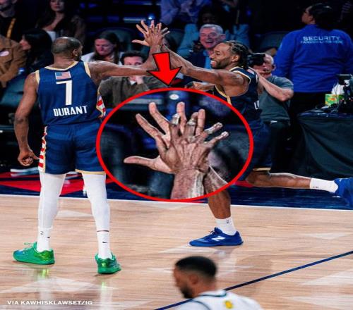 在伦纳德的个人IG上有一张图,杜兰特与伦纳德击掌,随后这张图引起了全美媒体的热议,因为杜兰特的手掌比伦纳德小了一大圈。