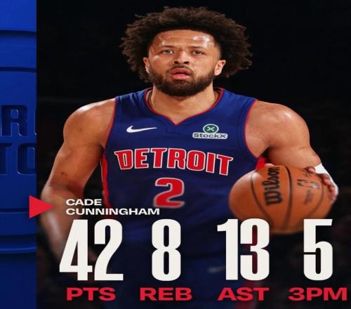 ——活塞队史名宿不少了,坎宁安是第一位单场得到40分+10助攻+5三分的球员