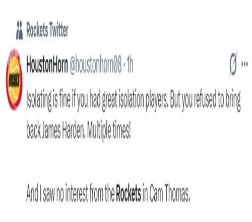 赛后休斯顿火箭队被大逆转登上了全美热搜第三的位置,这支火箭队很明显让太多火蜜失望。