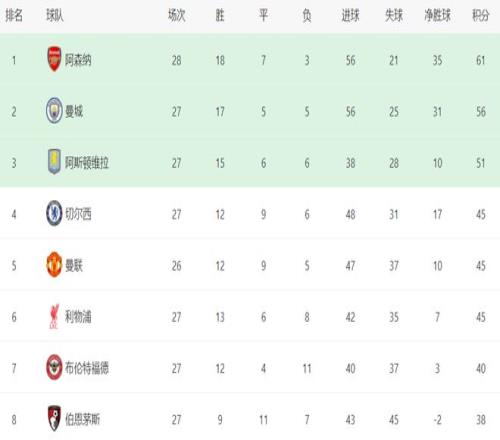 阿森纳赢下这场比赛之后,巩固了榜首位置。阿森纳拿到61分,排名第2的曼城56分。阿森纳在多赛一场的情况下,领先曼城5分,依然掌握争冠主动权。不过,阿森纳的争冠之路面临两场重头戏,能否赢下来或许将决定阿森纳的命运,这两场比赛分别对决切尔西和曼城。下一轮,阿森纳将在主场恶战切尔西。双方在首回合交手踢成平局。阿森纳要想赢下来恐怕不是一件容易的事情。