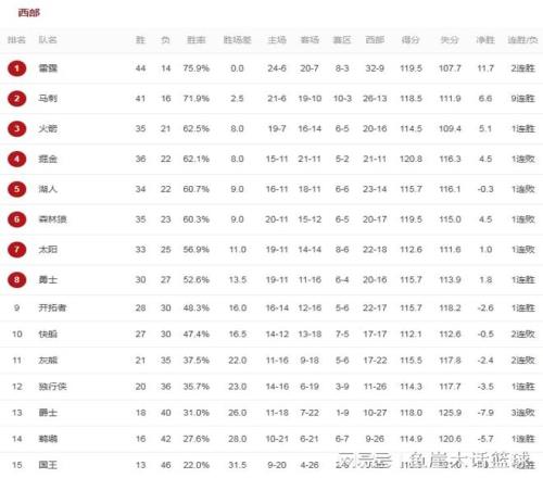 同时活塞输掉比赛后联盟第一的位置也易主,本场比赛后,活塞战绩来到42胜14负,胜率被雷霆(44胜14负)反超,让出联盟第一宝座。至于马刺赢得比赛后排在西部第二的位置,毕竟马刺只落后雷霆2.5个胜场。国王在今天的比赛中对阵灰熊,国王在近期已经是遭遇了16连败,如今面对伤兵满营的灰熊,国王也应该抓住机会止住球队颓势才行,而这场比赛国王也确实建立领先,虽然后续灰熊确实追近比分,但是国王这场比赛是多点开花,而且在关键时刻威少还能够命中三分,最终威少带领国王赢得比赛胜利结束了球队16连败。