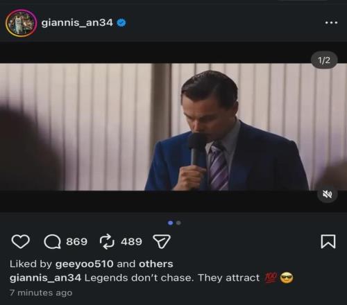 交易截止日宣布离队以后,字母哥甚至发了这样的社交媒体:“传奇不会去追逐,而是吸引他人! ”