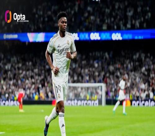 据统计,楚阿梅尼成为自2023年2月米利唐对阵利物浦以来,首位在欧冠淘汰赛中打入个人首粒欧冠进球的皇家马德里球员。