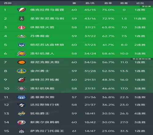 西部最新积分榜