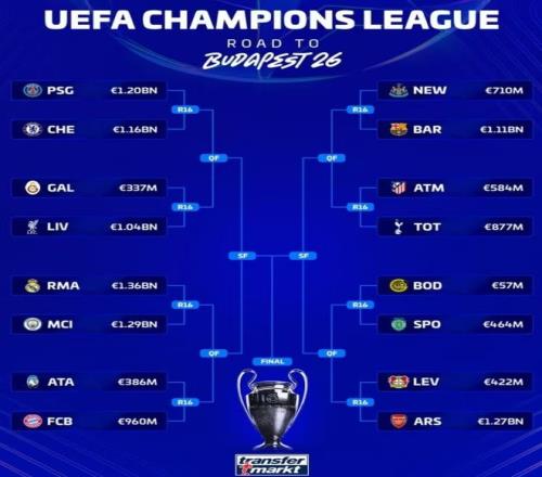 当然了,对于部分球队来说,抽签的对手是谁其实并不重要了——拿排名第五和第六的切尔西和巴萨来说,两支球队在欧冠八分之一决赛的对手,是排位较高的大巴黎和纽卡,即战力和纸面实力都是独一档的存在,相当于两杯毒酒里选一杯,就恩怨来看,巴萨在小组赛阶段和两支球队都有交手,切尔西在世俱杯决赛刚刚干碎了大巴黎,英超和纽卡也是打的有来有回,无论抽成什么样,都是故人相逢——最终,切尔西和大巴黎延续了欧冠赛场上的仇怨,而纽卡则要和巴萨再过招两个回合。