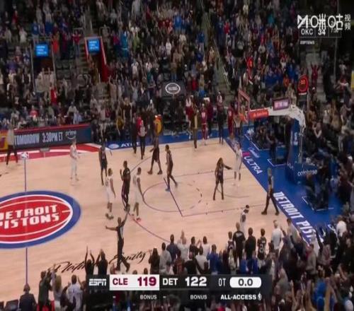 骑士以3分落败,119-122被活塞逆转