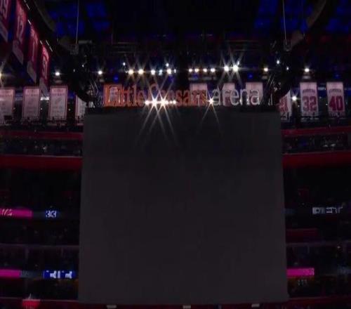 第三节还剩7分24秒时,比赛正胶着,活塞发动声波进攻,现场喇叭炸了狂响不停,球迷捂耳观赛,比赛被迫中断。