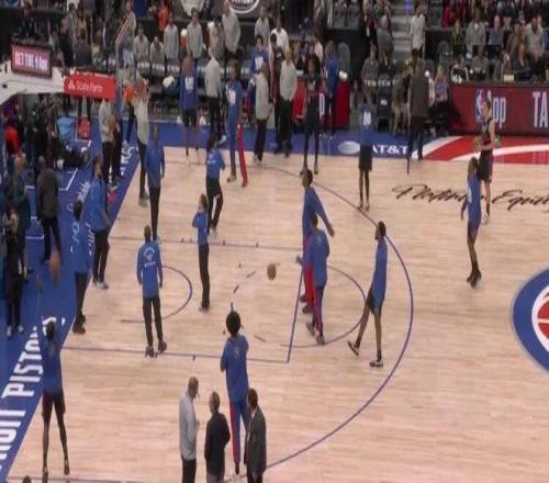 活塞詹金斯运球还没过半场,泰森故意犯规,詹金斯顺势3分出手,裁判给了活塞三次罚球。