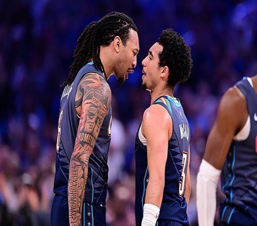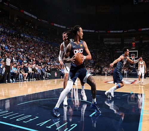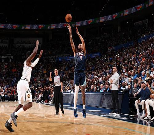 本场比赛中,雷霆的替补中锋杰林-威廉姆斯(Jaylin Williams)也是延续了自己最近一段时间的不俗表现。威廉姆斯全场出场25分52秒,投篮7中4,三分线外4中2,罚球2中2,得到了12分5篮板3助攻1盖帽的数据,还有1次失误和2次犯规,正负值更是达到了全场最高的+17。威廉姆斯在进攻端展现出了相当不错的得分能力,他的出手次数并不多,但是他的得分能力其实还是比较全面的,他在外线投篮方面的稳定性以及他在传球和策应方面的表现都是值得肯定的。威廉姆斯在防守端也没有出现什么问题,也算是扛起了球队内线的防守大旗。威廉姆斯在本场比赛中在场上的效果相当不错,这也能够体现在他超高的正负值上,他简直是打爆了掘金的替补中锋约纳斯-瓦兰丘纳斯(Jonas Valanciunas)。