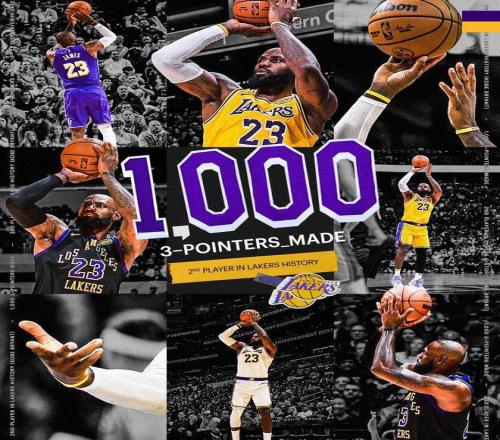 值得一提的是,詹姆斯在此役还创下了3大神迹。第1、此役之后,詹姆斯命中了加盟湖人后的第1000+记三分,成为队史第二位达成此成就的湖人球员,第一位是科比(1827记)。