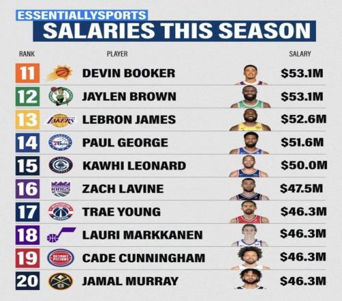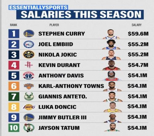 最近外媒整理了本赛季球员薪资榜,库里排第1,恩比德、约基奇紧跟其后,一眼看过去全是五千万美元起步的数字。更刺激的是,同一档位里既有已经三十多岁的老面孔,也有正当打的新核心,球队还分布在不同争冠窗口里:有人拿的是当下战力的“即刻回报”,有人拿的是未来几年继续加码的“长期押注”。同样是顶薪,谁的合同最值、谁的合同最容易被吐槽,就得把国籍、年龄、所在队、人民币换算和合同截止时间一起摊开看了。