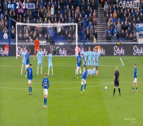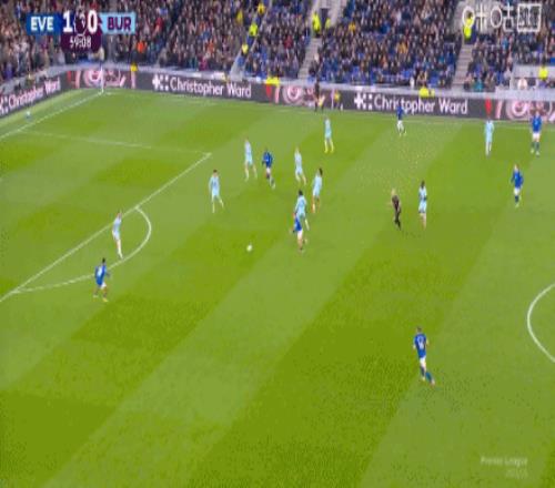 第31分钟,加纳任意球助攻,塔尔科夫斯基头槌破门,埃弗顿1-0伯恩利
