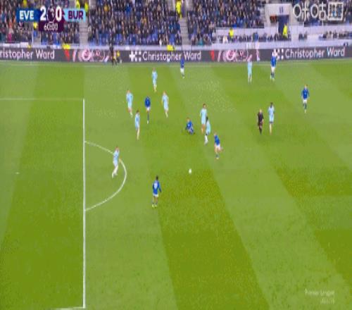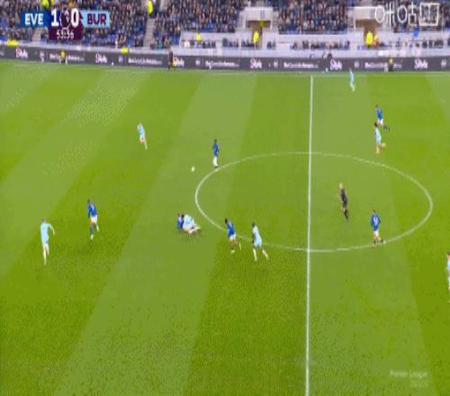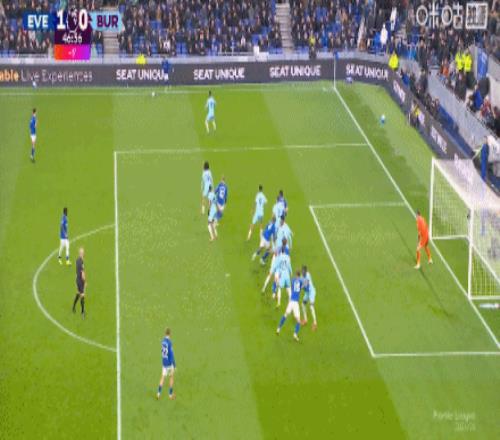 第59分钟,恩迪亚耶助攻,霍尔轻挑破门,埃弗顿2-0伯恩利