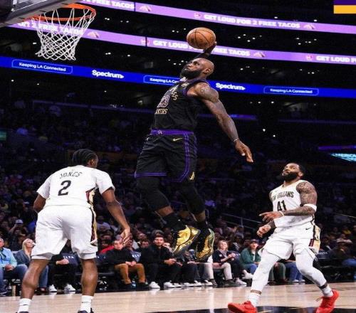 末节决战,拉拉维亚上篮打进,詹姆斯罚球二中一,穆雷突分助攻贝命中3分,艾顿抛投拿2分,穆雷顶着詹姆斯射进3分,回来斯玛特顶着穆雷强投一个,艾顿禁区打进2+1,湖人只落后1分!锡安强打艾顿造犯规,艾顿暴怒挥拳表示不满,裁判给了T,鹈鹕罚球拿2分,麦戈文斯又造里夫斯犯规,罚球拿2分,锡安打进2+1,鹈鹕一波下来将分差扩大至8分,湖人情况不妙!海斯换下艾顿,上场就暴扣一个!里夫斯也命中3分,海斯随后抓帽锡安,老詹快下造犯规可惜二罚全飞,回来老詹将功补过大帽贝的上篮,可惜里夫斯上篮继续铁,锡安上篮干翻海斯进攻犯规!斯玛特回来造犯规罚球拿2分,里夫斯铁了一晚,终于命中关键3分,墨菲连续3分打铁,东契奇抛投拿2分,湖人打出12-0的小高潮,逆转4分!比赛继续,斯玛特抢断助攻老詹上篮,锡安强打内线连拿4分,将分差缩小至2分!东契奇罚球拿2分,斯玛特命中关键3分,湖人领先了7分!最终,湖人110-101击败鹈鹕!
